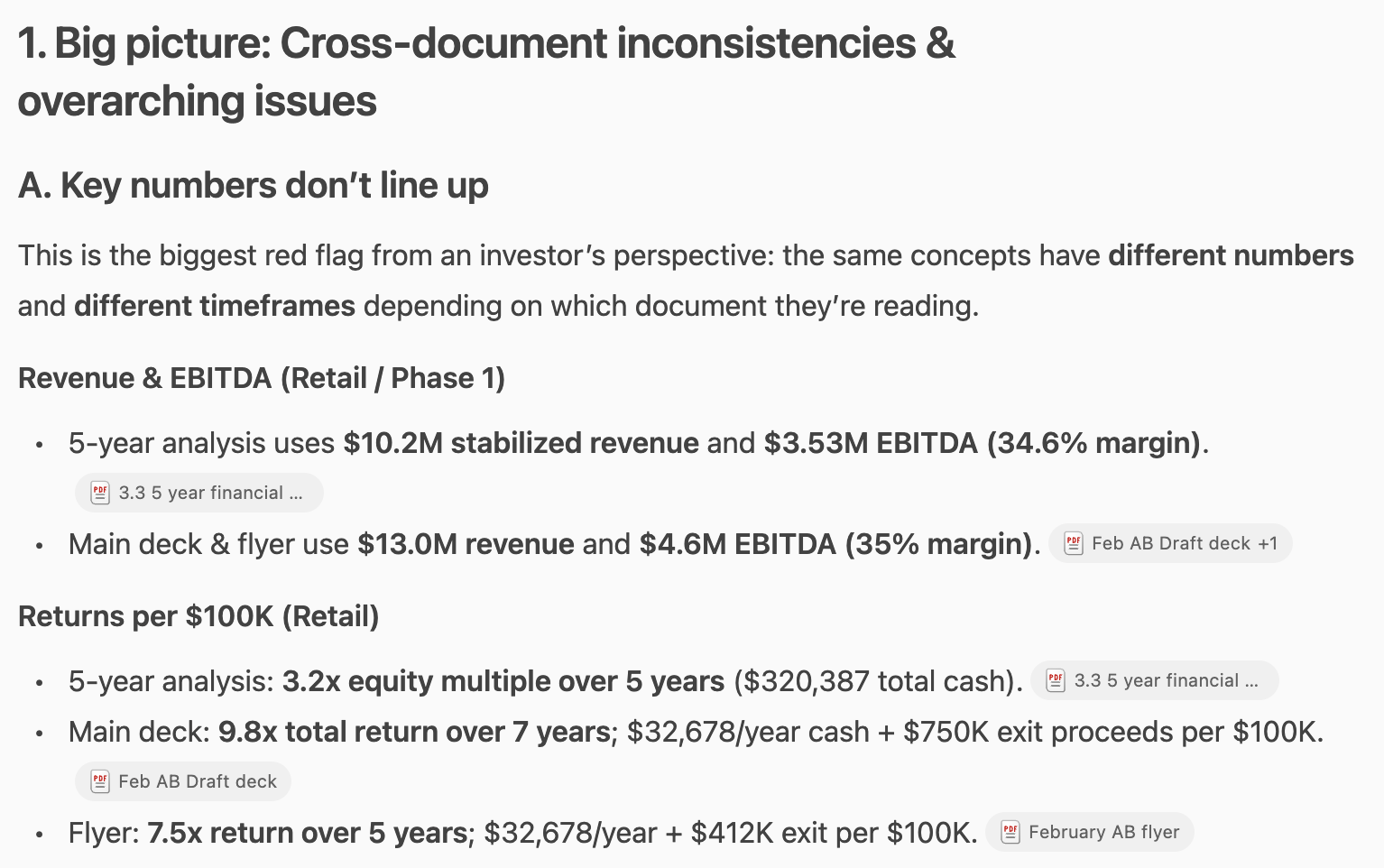 - Your numbers must match everywhere - deck, website, LinkedIn, press releases, financial statements. If your deck says $2.1M ARR, your website better not say "over $2.5M."